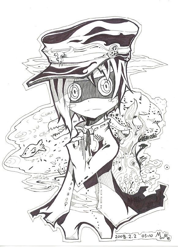 名刺にいたお面の子をかいてしまいましたー^^擬人化許可いただいてたんでw